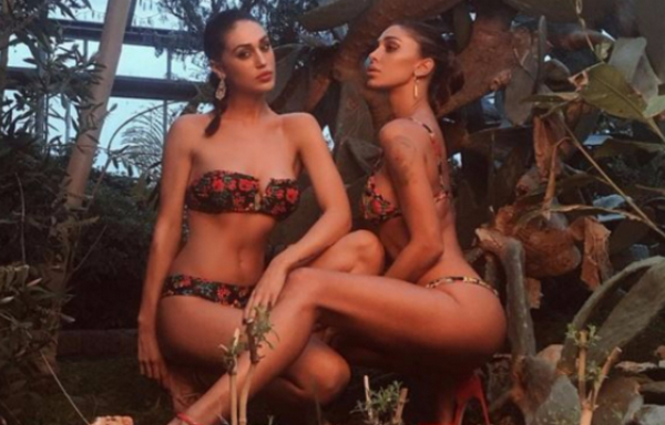 Belen e Cecilia Rodriguez presentano la loro linea di costumi con uno shooting pubblicitario e con un sexy balletto.