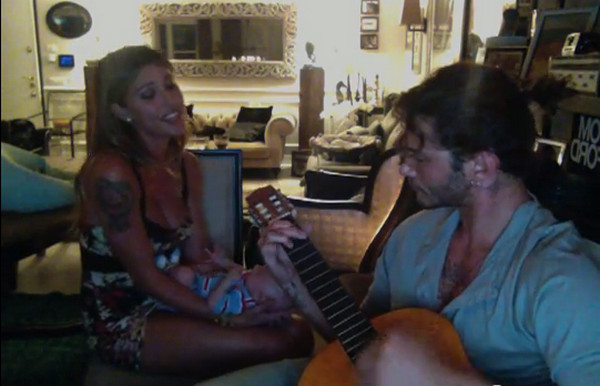 La famiglia De Martino- Rodriguez non smette di deliziarci con i suoi quadretti famigliari e dopo le vacanze a Formentera, quelle a Positano e le foto hot di Stefano nudo ecco un video in cui la coppia più chiacchierata dello showbiz canta la ninna nanna al piccolo Santiago.Nel video che i neogenitori più famosi d’Italia hanno postato su Facebook vediamo la showgirl, bellissima, radiosa e abbronzata come di consueto, in un miniabito inguinale e profonda scollatura, del resto chi non culla il proprio bimbo vestita così? Belen, tiene tra le braccia il piccolo Santiago e gli canta la ninna nanna mentre Stefano la accompagna con la chitarra. Il piccolo sembra gradire e agita le manine. Se pensate che le note siano qualcosa di simile a ninna nanna ninna o questo bimbo a chi lo do però vi sbagliate di grosso, la coppia preferisce addormentare Santiago con Si te vas di Shakira, roba che se ci provassi io mia figlia rimarrebbe sveglia per un mese. Per chi non si volesse perdere lo spettacolo a seguire trovate il video.