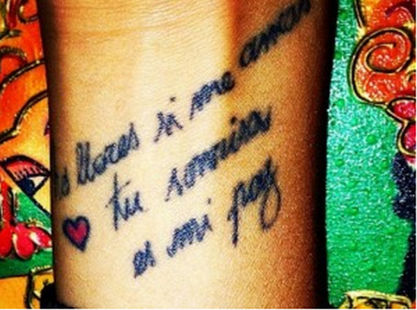 Belen Rodriguez e Stefano De Martino, in attesa di coronare il loro amore con le nozze, che si terranno il 20 settembre, si godono le vacanze a Formentera tra sole, mare, coccole al loro piccolo Santiago e foto su Istagram.Recentemente il ballerino di Amici aveva dedicato alla sua compagna una romantica frase: “No llores si me amas, tu sonrisa es mi paz”, che tradotto in italiano sarebbe “Se mi ami non piangere, il tuo sorriso è la mia pace” e Belen ha pensato bene di imprimersela sulla pelle per sempre con un tatuaggio sul polso. Poteva forse tenerselo per se? Ovviamente no e infatti la showgirl ha puntualmente postato le immagini del suo nuovo tatoo su Istagram. A seguire potete ammirare il risultato.