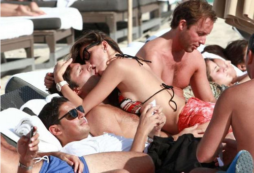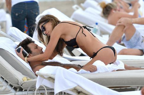 Tra Claudia Galanti e il marito Arnaud Mimram la passione è ancora bollente, la coppia che sta trascorrendo le vacanze natalizie a Miami Beach si è esibita in effusioni davvero hot sulla spiaggia della località balneare.Claudia e Arnaud, che sono genitori di due bambini, contribuiscono ad alzare la temperatura della già torrida Miami tra baci appassionati e avvingiamenti talmente hot da rendere necessario coprirsi con un asciugamano. Le due recenti gravidanze non sembrano aver intaccato il fisico perfetto della showgirl, che esibisce un topless da urlo e nemmeno messo freno ai suoi bollenti spiriti. A seguire potete ammirare un’ampia gallery delle acrobazie della sexy Claudia.