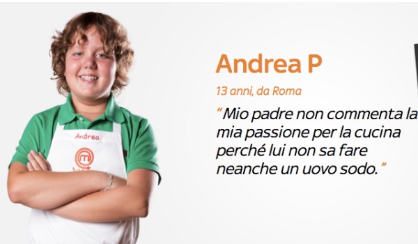 Conosciamo brevemente ciascuno di loro: Andrea B. dice che se mai avrà una moglie cucinerà sempre per lei, Andrea P. critica invece il padre, che a detta sua non sa nemmeno fare un uovo sodo, Carlotta, di origini spagnole, porterà anche la sua cultura a Junior Masterchef e dichiara di essere competitiva, Emanuela, di 9 anni, pensa già di aprire un ristorante quando sarà grande.