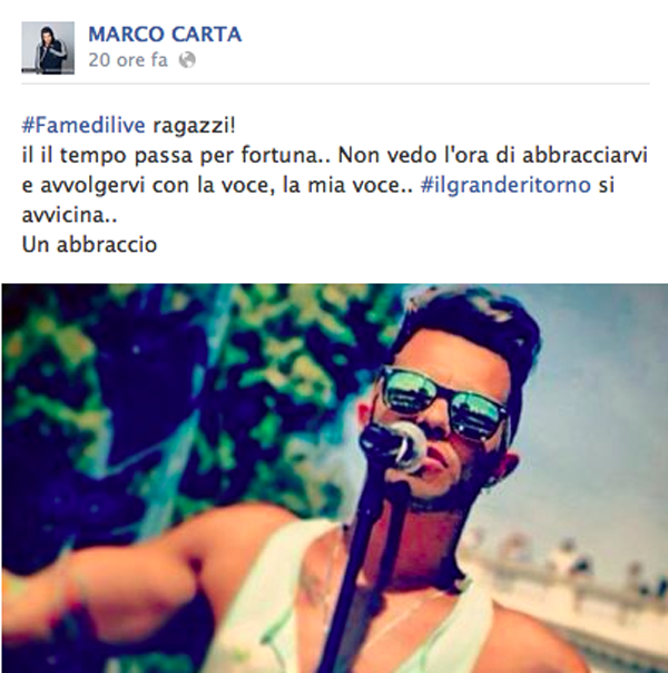 Su Facebook, Marco Carta scrive un messaggio preciso ai suoi fan e in poche ore riceve il pieno di consensi.