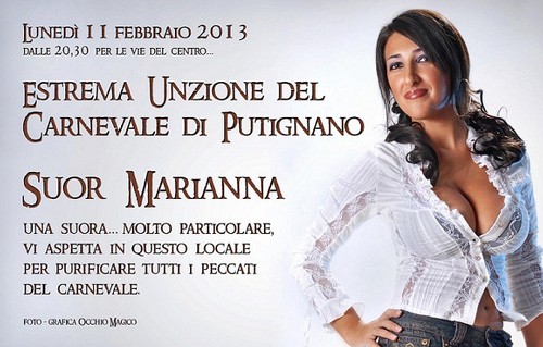 L’ex corteggiatrice di Uomini e Donne Marika Fruscio doveva far parte del celebre carnevale di Putignano, ma qualcuno ha preso il suo posto. Le celebrazioni della festa devono prendere forma il lunedì dopo il martedì grasso, quando viene data l’estrema unzione al Carnevale che sta ‘morendo’: un corteo composto da suore, preti e chierichetti è incaricato di dare l’estrema unzione anche ai passanti presenti nelle vie della cittadina.