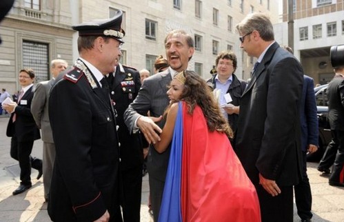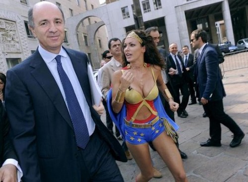 Melita vestirà i panni di una sexy Wonder Woman, spedita in giro per l’Italia in vere e proprie missioni per scovare i miti ancora vivi nella memoria degli italiani. Per la prima uscita, l’eroina più impertinente della tv si è sbarcata a Piazza Affari, dove si è “confrontata” con personaggi di spicco della nostra finanza (Ignazio La Russa, Lamberto Dini, Giovanni Bazoli) sui più disparati temi legati agli anni 80. Dopo il salto, il reseconto fotografico dell’incontro.