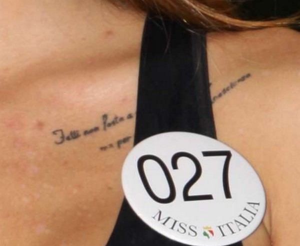 Sono già tante le curiosità che la riguardano, a partire dal tatuaggio che cita un versetto dell’Inferno di Dante Alighieri e che recita: