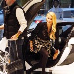Questa volta si dà all’acquisto di una fuoriserie bianca della McLaren e di certo non bada a spese. La vediamo in queste foto mentre si aggira felice attorno al mezzo e subito dopo uscire dalla concessionaria, attorniata dalle sue guardie del corpo.
