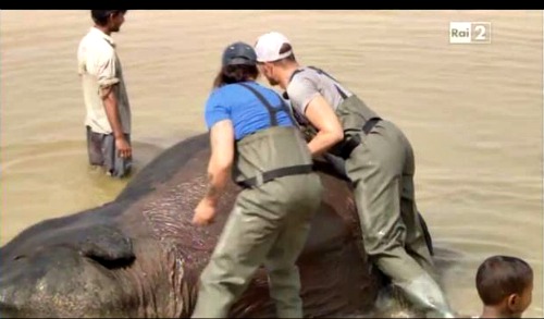 22.16: le due coppie che hanno ottenuto l’handicap dovranno lavare un elefante e potranno ripartire solo quando sarà pulito.