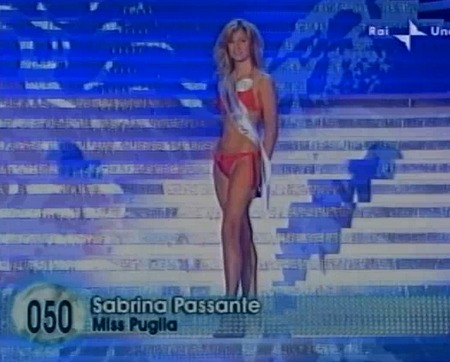 Sabrina Passante è una ventiduenne brindisina che ha partecipato a Miss Italia 20087 sfiorando la vittoria (è arrivata seconda).