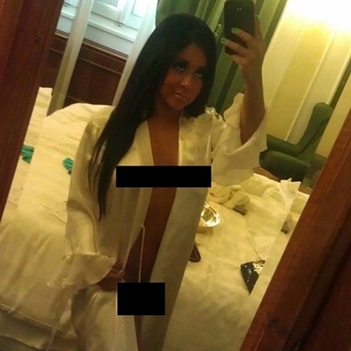 Il primo blog ad averle pubblicate è stato Egotastic. Poi, come ovvio, si sono diffuse in tutto il web. Fanno discutere le foto hot di Nicole Snooki Polizzi rese pubbliche nelle scorse ore da qualcuno di cui non si conosce al momento l’identità. Si tratta di scatti privati che Snooki, la star di Jersey Shore, ha realizzato con il proprio cellulare in quella che sembra una camera di hotel. Con unavestaglia bianca, la donna non ha nascosto molto delle sue grazie all’obiettivo fotografico Dopo il salto potete vedere le immagini, non prima di aver letto il commento fatto a E!News dal portavoce di Snooki.