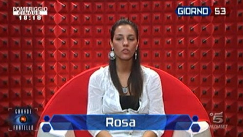 Rosa si lamenta con Davide: dice di essersi aperta con lui, ma di non essere apprezzata come dovrebbe. La preoccupazione della napoletana deriva dal fatto che è in nomination, ha paura e non ha intenzione di uscire.