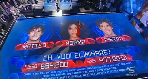 Guendalina accusa Davide di essere falso. Dopo che le sono stati mostrati i confessionali del ragazzo, in cui parlava del comportamento della mamma di questo GF, a lei non va giù il fatto che davanti si comporti in maniera diversa di quello che pensa nella realtà. Viene mostrato il confessionale di Clivio in cui parla del diverbio tra Guendalina e Davide: prima della fine della trasmissione qualcuno deve provvedere a mettere i sottotitoli!