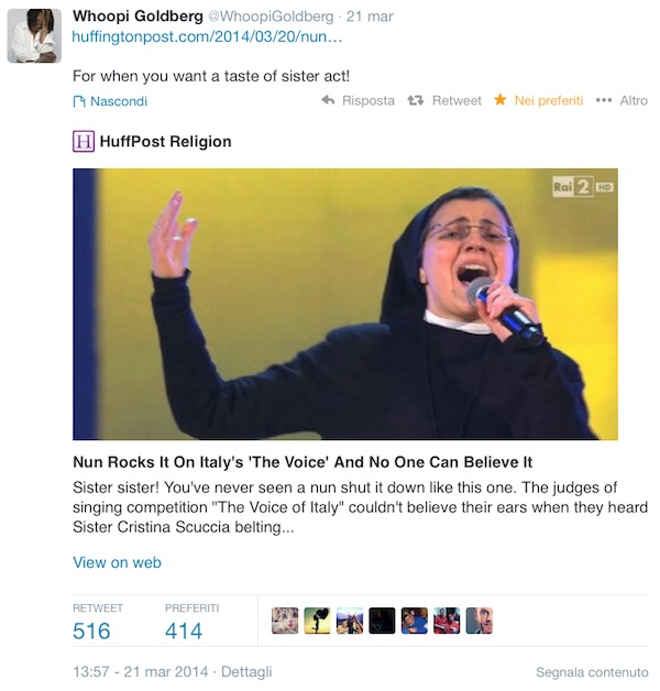 A The Voice Of Italy 2, Noemi ha mostrato di avere grande carattere e, ancora più dell’anno scorso, si è mostrata pungente nei commenti. Ed ecco allora che non sorprende la schiettezza con la quale Noemi commenta la rivelazione di The Voice Of Italy 2, ovvero Suor Cristina, assoldata da J-AX per fare parte della sua squadra.