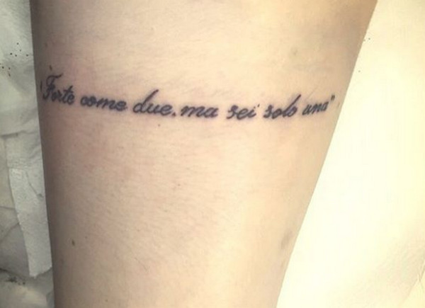 Nell’immagine pubblicata su Instagram che vi proponiamo più avanti, Alessia condivide con i suoi fan l’immagine del tatuaggio realizzato da poco, che riporta la frase “Forte come due, ma sei solo una”, accompagnata da un secco “The End” nella didascalia: la rottura tra Aldo Palmeri ed Alessia Cammarota sarà definitiva o ci sarà un ritorno di fiamma tra i due?