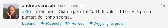 In attesa del risultato del televoto, dal profilo Twitter di Andrea Scrosati – vicepresidente Sky – arriva una bella notizia per XFactor: